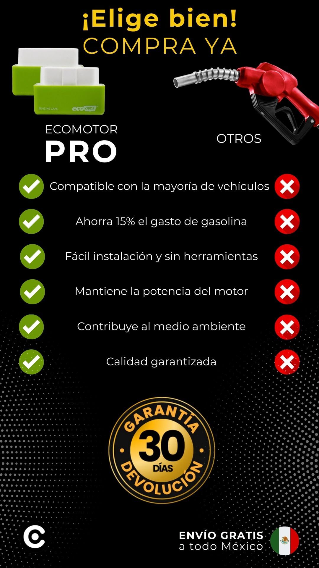 Sí, EcoMotor Pro optimiza la inyección de combustible y se adapta a tu estilo de conducción. Después de los primeros 150-200 km notarás una reducción de hasta un 15% en el gasto de gasolina.
