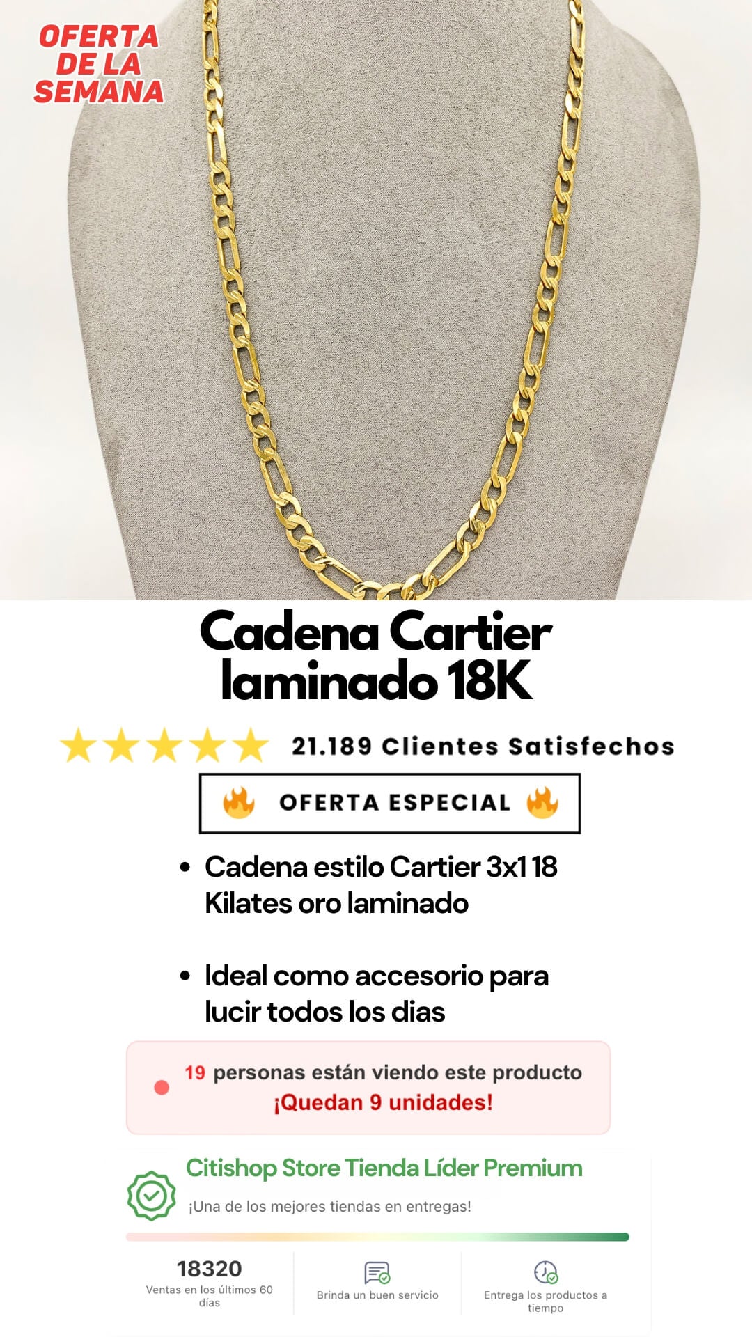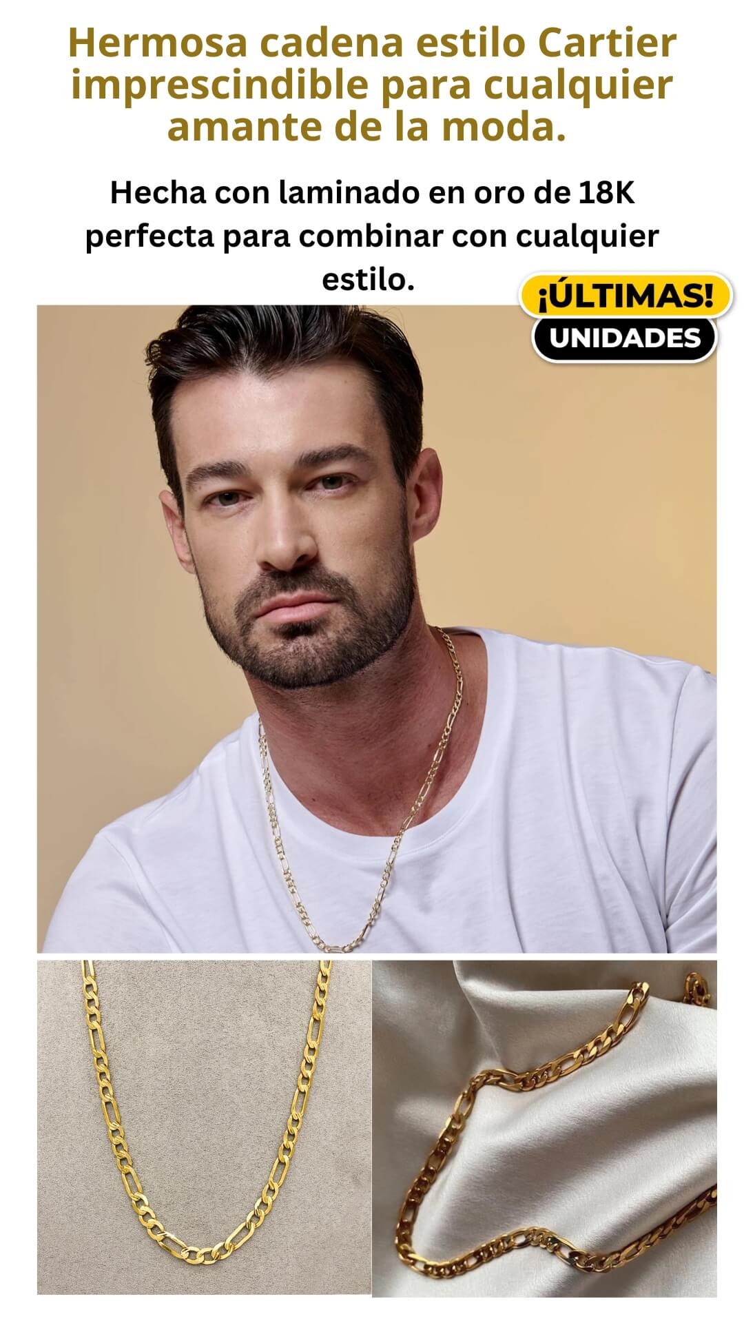 La cadena mide 60 cm de largo y 7 mm de ancho, perfecta para uso diario y ocasiones especiales.